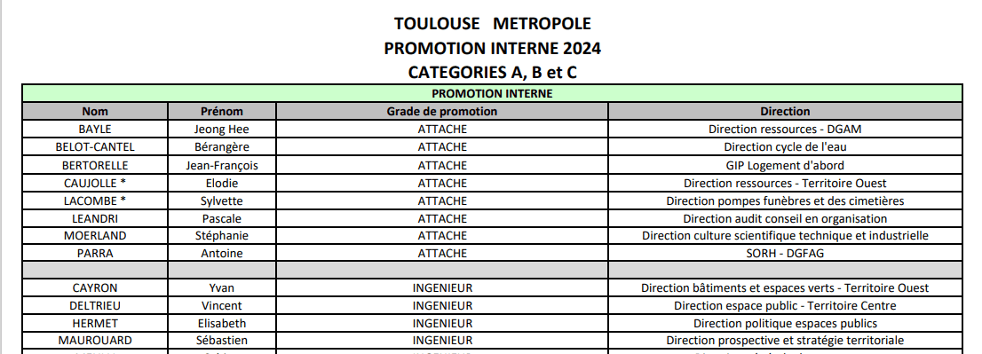 Promotion interne A-B-C Toulouse Métropole 2024