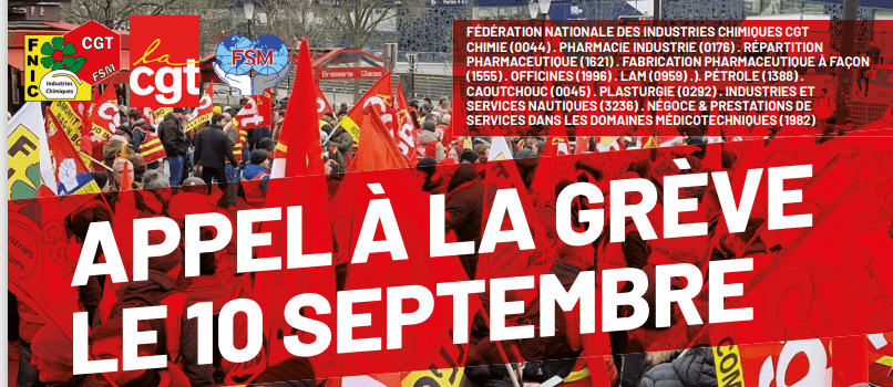 Nouvelles des camarades d’autres secteurs : TRACT-APPEL-A-LA-GREVE-LE-10-SEPTEMBRE FÉDÉRATION NATIONALE DES INDUSTRIES CHIMIQUES CGT CHIMIE (0044) . PHARMACIE INDUSTRIE (0176) . RÉPARTITION PHARMACEUTIQUE (1621) . FABRICATION PHARMACEUTIQUE À FAÇON (1555) . OFFICINES (1996) . LAM (0959) .). PÉTROLE (1388) . CAOUTCHOUC […]