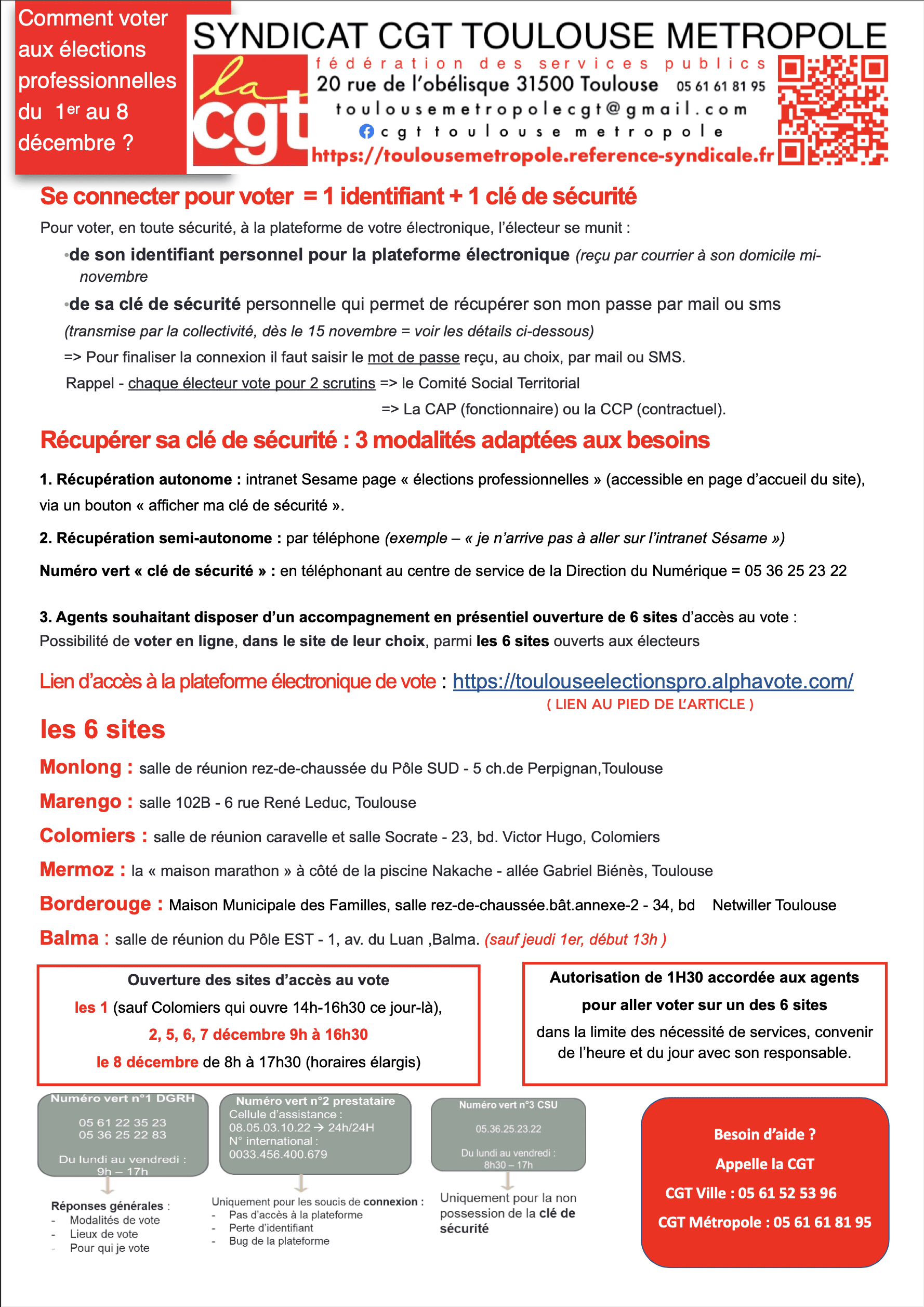 La notice pas à pas par nos camarades de la ville de Toulouse La notice simplifiée tm Lien d’accès a la plateforme électronique de vote Tract élections professionnelles